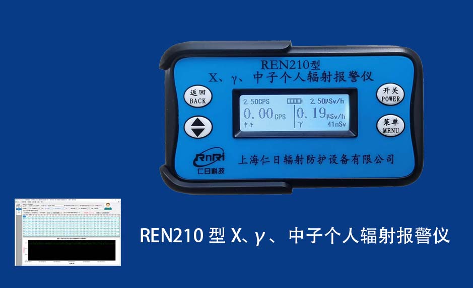 REN210型X、γ、中子個人輻射報警儀內(nèi)置SiPM和鋰玻璃晶體組成中子探測器儀器,采用反照率方式探測中子射線,同時也能探測X、γ射線。因此它可同事監(jiān)檢測X、γ、中子三種射線。能顯示工作場所的劑量當(dāng)量率和累積劑量,更換電池時,日期及累積數(shù)據(jù)能永久保存。可選配RenRiPersonal個人劑量管理軟件,該軟件可存儲多個人的歷史數(shù)據(jù),能記錄日累積、月累積、年累積、輻照時長、計算平均劑量率、扣除或不扣除本底輻射,且以文字和圖譜的方式展現(xiàn)數(shù)據(jù)。廣泛應(yīng)用于環(huán)保、化工、水泥、煤礦、土木工程、石油、醫(yī)院、疾控、進出口商檢、核電、加速器、機場、中子源庫和其他安檢、邊境控制海關(guān)檢測等